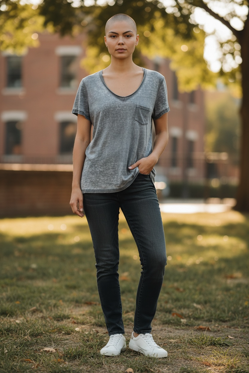 Alternative Apparel Gray Burnout V-Neck Pocket Tee – Women’s M